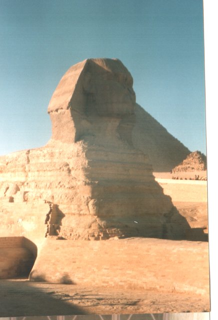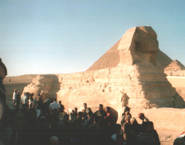 Beeindruckend ist auch der Große Sphinx. Zwar wurde das Gesicht im Laufe der Jahrhunderte schwer beschädigt, unter anderen durch die Mameluken, die es als Übungsziel für ihre Kanonen benutzen, aber der seltsame und irgendwie geheimnisvolle Ausdruck hat sich erhalten. Schon im alten Ägypten war der Sphinx mehrmals bis zum Hals im Sand versunken, und musste freigelegt werden. Rätselhaft ist auch, wessen Darstellung der Sphinx ist, und ob er nicht vielleicht lange vor den Pyramdiden entstand.