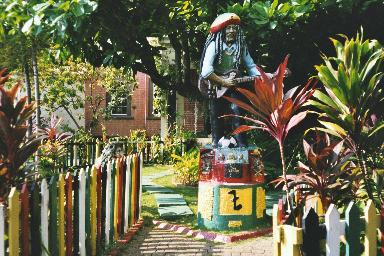 Denkmal beim Bob Marley Museum Leider durfte man dort weder Filmen noch Fotografieren |