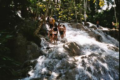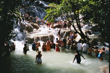 In den meisten Angeboten für Rundreisen enthalten sind die Dunn's River Falls. Sie sind dank ihrer günstigen Lage auch gut an das Verkehrsnetz angebunden und ebenfalls allein leicht zu erreichen. Der Wasserfall zählt zu den meistbesuchten Ausflugszielen Jamaikas und das Umfeld ist auch dementsprechend ausgebaut. Auf einer Länge von cirka 200m fließt das Wasser in Kaskaden über Kalksteintreppen hinunter. In den einzelnen Zwischenebenen ist es möglich im klaren Gebirgswasser zu baden. Wem das zu kalt ist, der kann dies auch im wärmeren Meerwasser machen, direkt dort hinein fließt nämlich der Wasserfall. Vom Strand aus ist es auch möglich mit einem Führer den kompletten Wasserfall hinaufzusteigen. (Mein Tipp: für jüngere und fitte Leute auch ohne Führer kein Problem.) Zumindest sorgen die Führer dafür, das sie ihre Kamera garantiert trocken oben ankommt. Auch die Landschaft rings um den Wasserfall bietet wunderschöne Fotomotive.