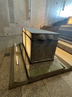 Kalkstein, eingebettet in eine größere Begräbnisanlage mit