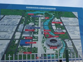 Das Olympiagelände von Peking heißt auf chinesisch 北京奧林匹克公園 (Beijing Oulinpike Gongyuan) und ist auf englisch ausgeschildert als Beijing Olympic Green.