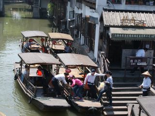 Am Ufer des Huangpu-Flusses, der auch durch Shanghai fließt, gruppieren sich die traditionellen Häuschen von Zhujiajiao um kleinere Kanäle.